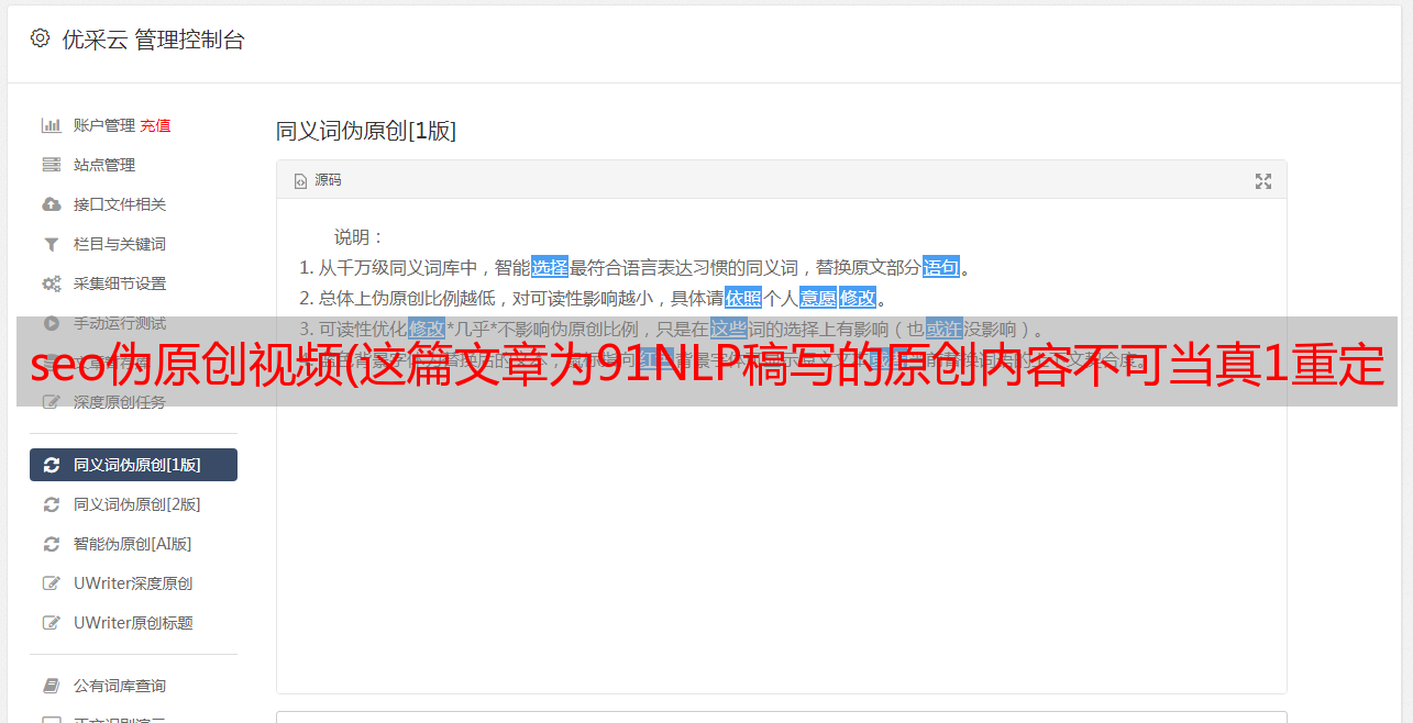 seo伪原创视频(这篇文章为91NLP稿写的原创内容不可当真1重定向)