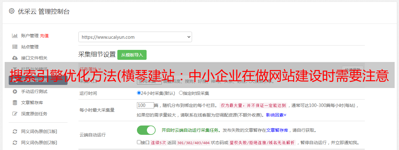 优采云 发布时间: 2021-12-07 19:21搜索引擎优化方法(横琴建站:中小企业在做网站建设时需要注意哪些问题)