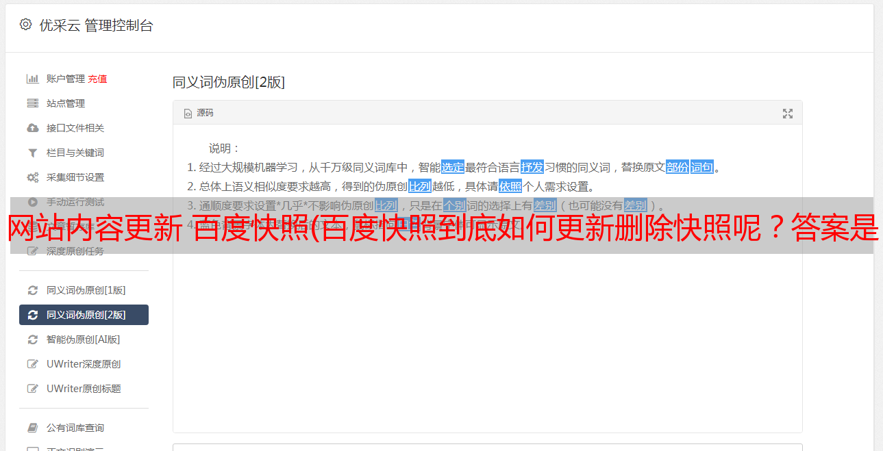 优采云 发布时间: 2021-12-08 10:15网站内容更新 百度快照(百度快照到底如何更新删除快照呢?答案是什么?