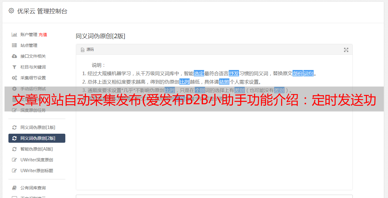 优采云 发布时间: 2021-12-08 12:13文章网站自动采集发布(爱发布B2B小助手功能介绍:定时发送功能软件介绍)