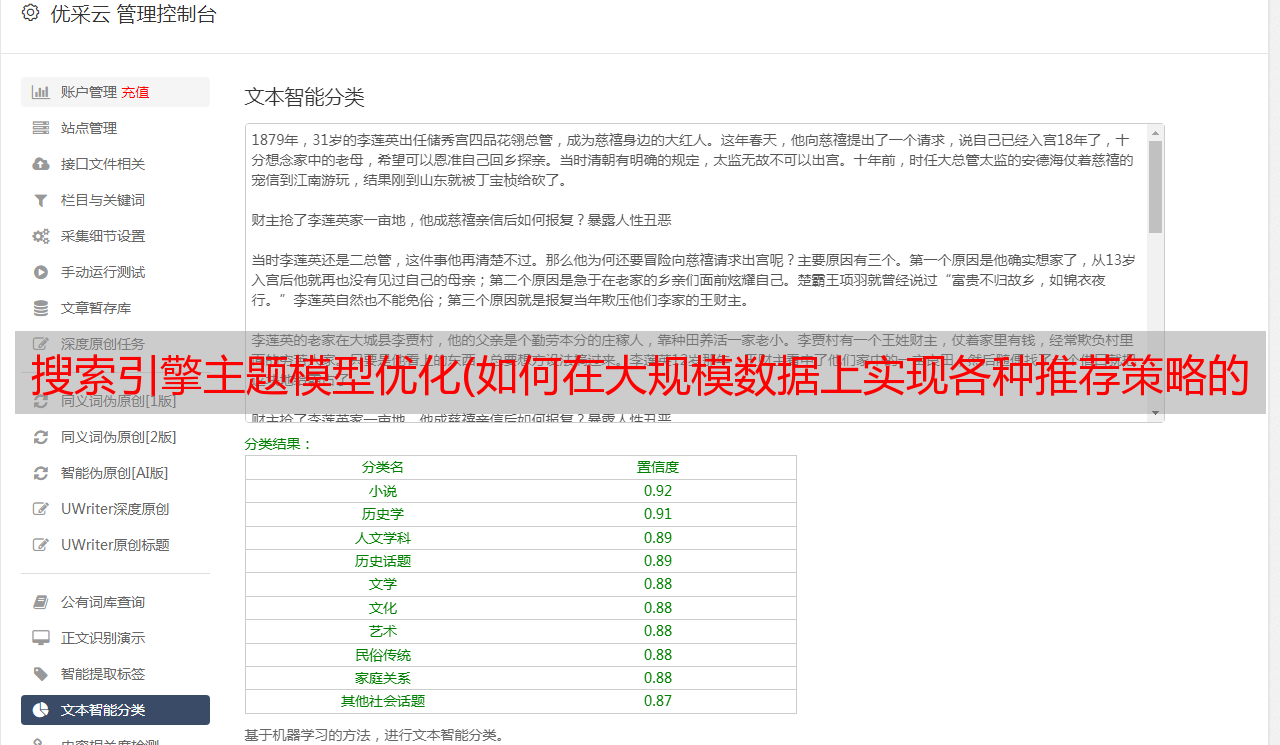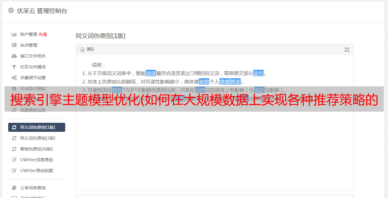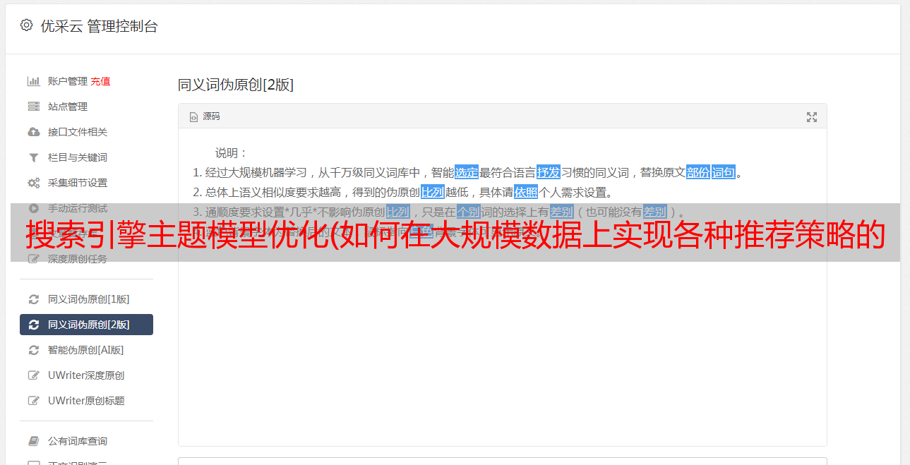 优采云 发布时间: 2021-12-08 16:13搜索引擎主题模型优化(如何在*敏*感*词*数据上实现各种推荐策略的最好途径?)