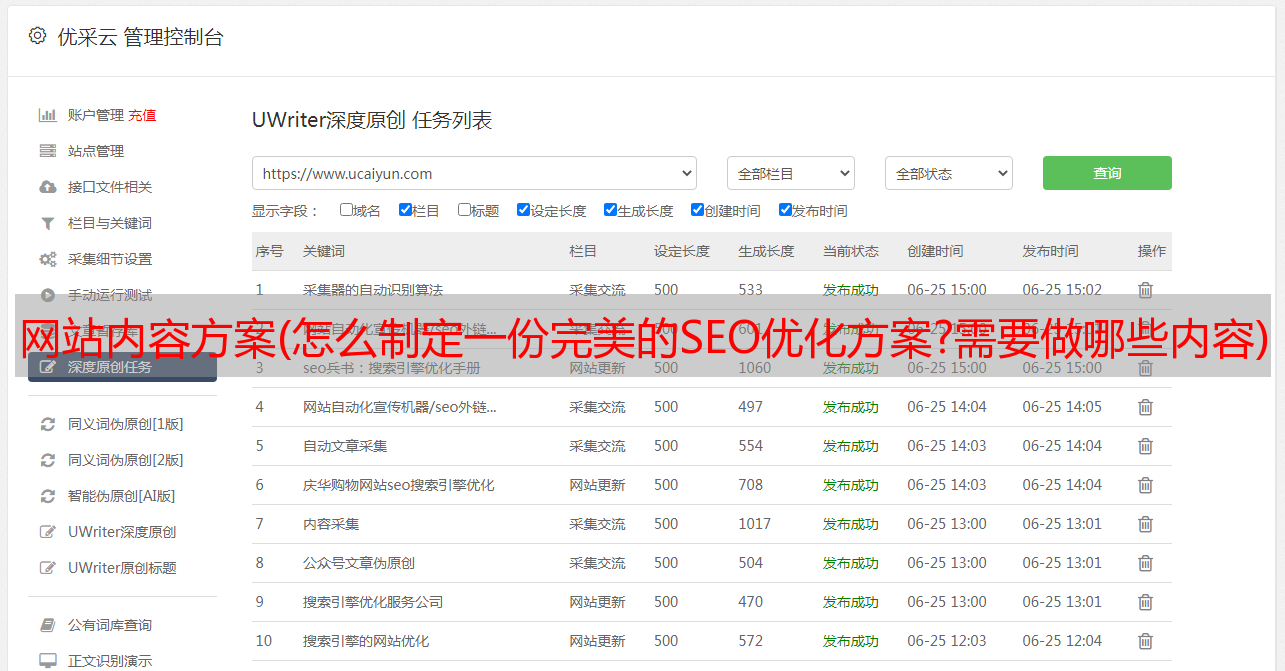 优采云 发布时间: 2021-12-08 17:01网站内容方案(怎么制定一份完美的SEO优化方案?需要做哪些内容)