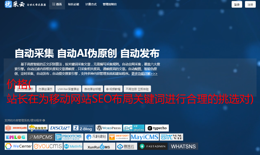 价格( 站长在为移动网站SEO布局关键词进行合理的挑选对)