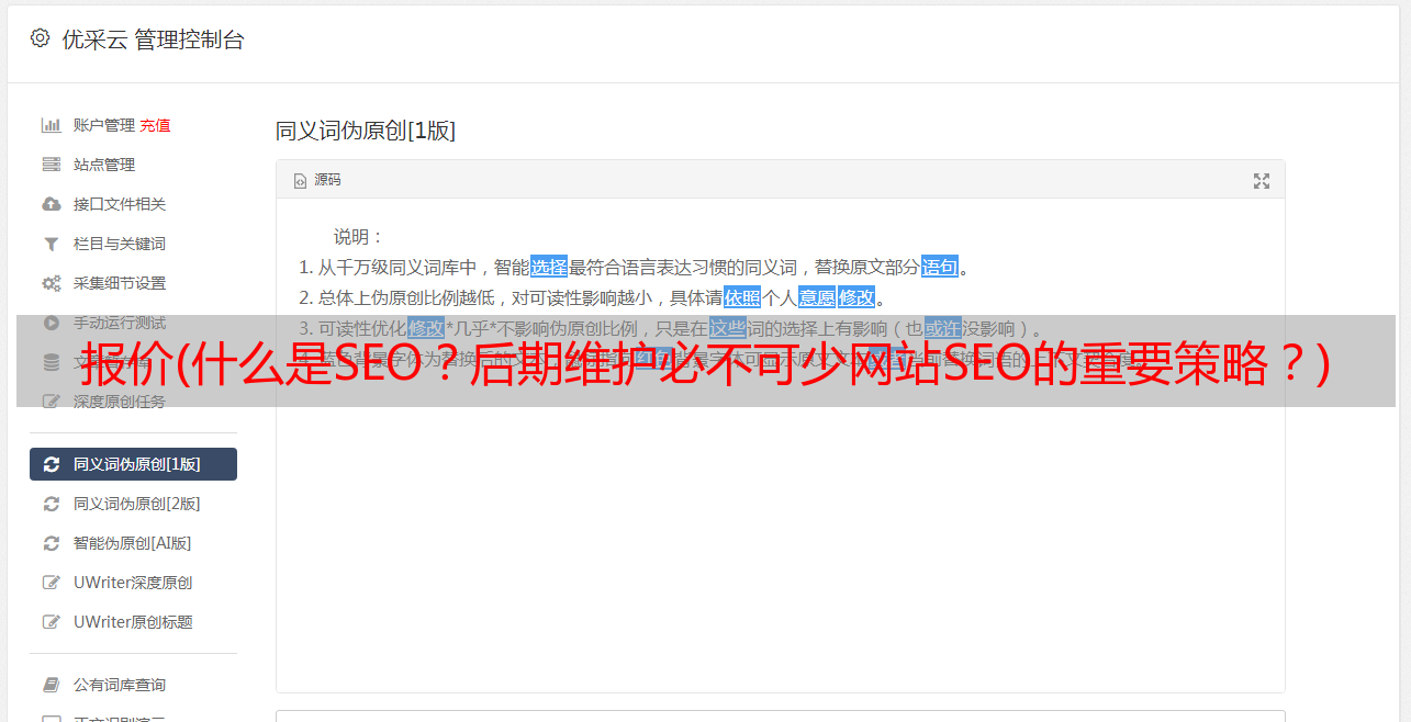 优采云 发布时间: 2021-12-08 21:05报价(什么是SEO?后期维护必不可少网站SEO的重要策略?)