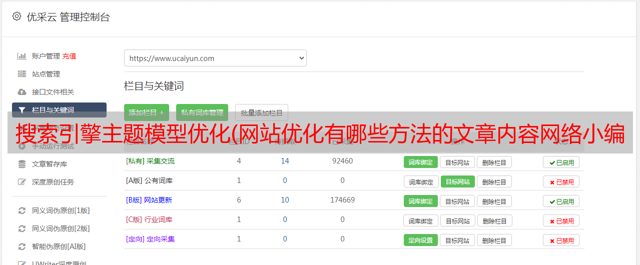 优采云 发布时间: 2021-12-09 11:11搜索引擎主题模型优化(网站优化有哪些方法的文章内容网络小编来给您解答)