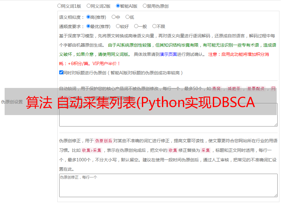 优采云 发布时间: 2021-12-09 12:24算法 自动采集列表(Python实现DBSCAN聚类算法的资料请关注服务器之家)