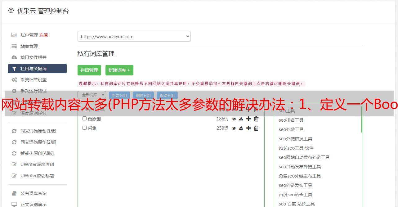 优采云 发布时间: 2021-12-09 13:13网站转载内容太多(PHP方法太多参数的解决办法:1、定义一个BookModel类)
