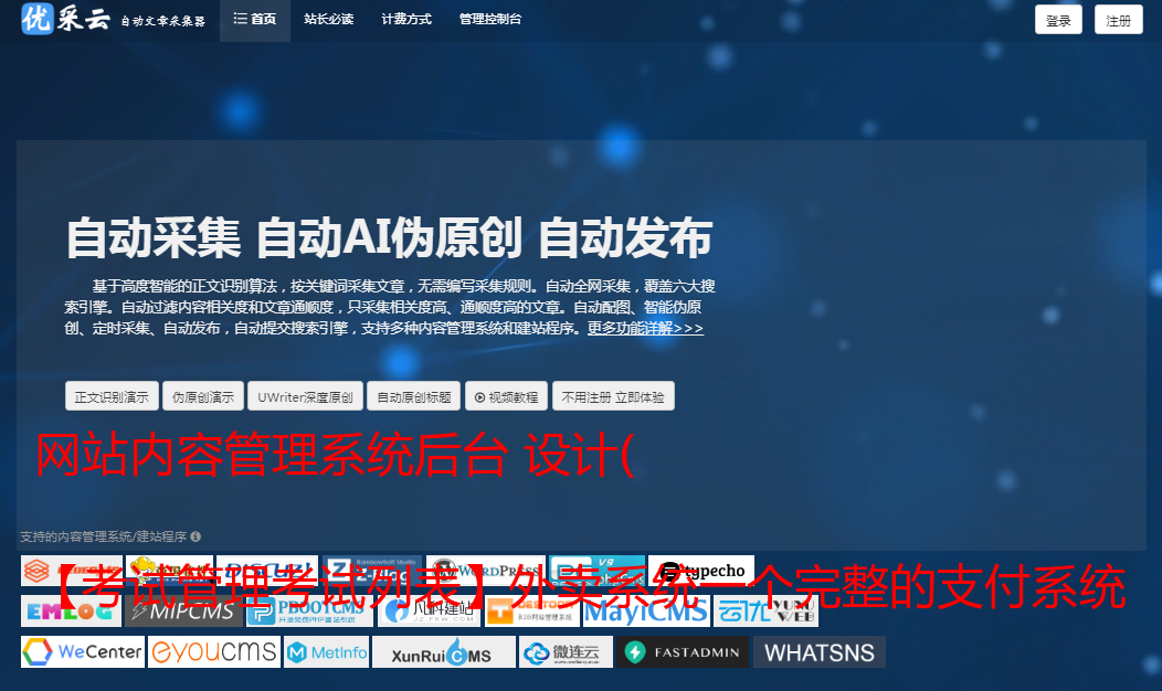 网站内容管理系统后台 设计( 【考试管理考试列表】外卖系统一个完整的支付系统 )