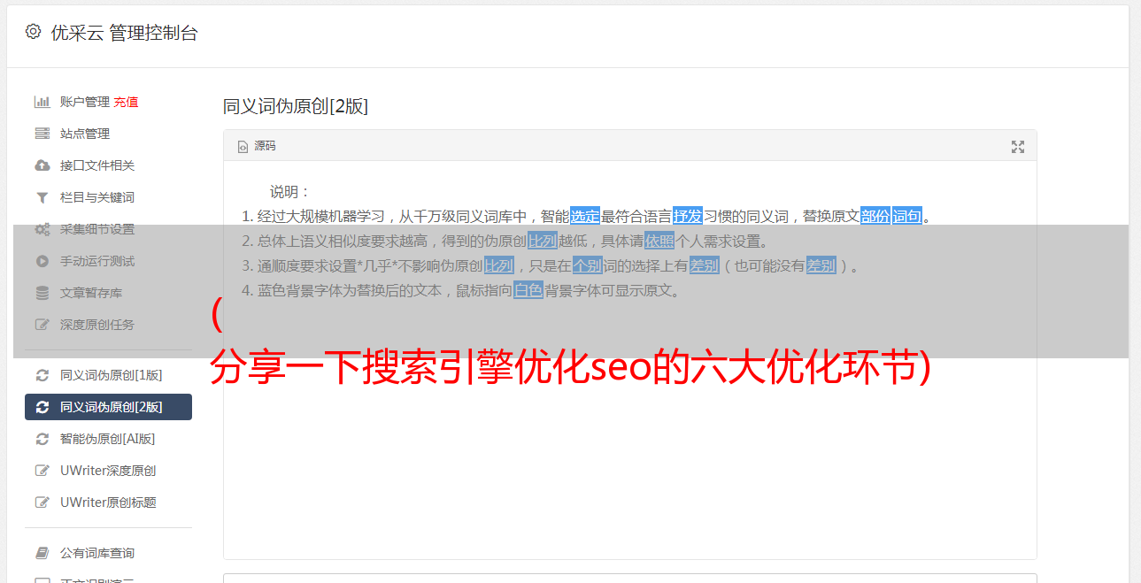 ( 分享一下搜索引擎优化seo的六大优化环节)