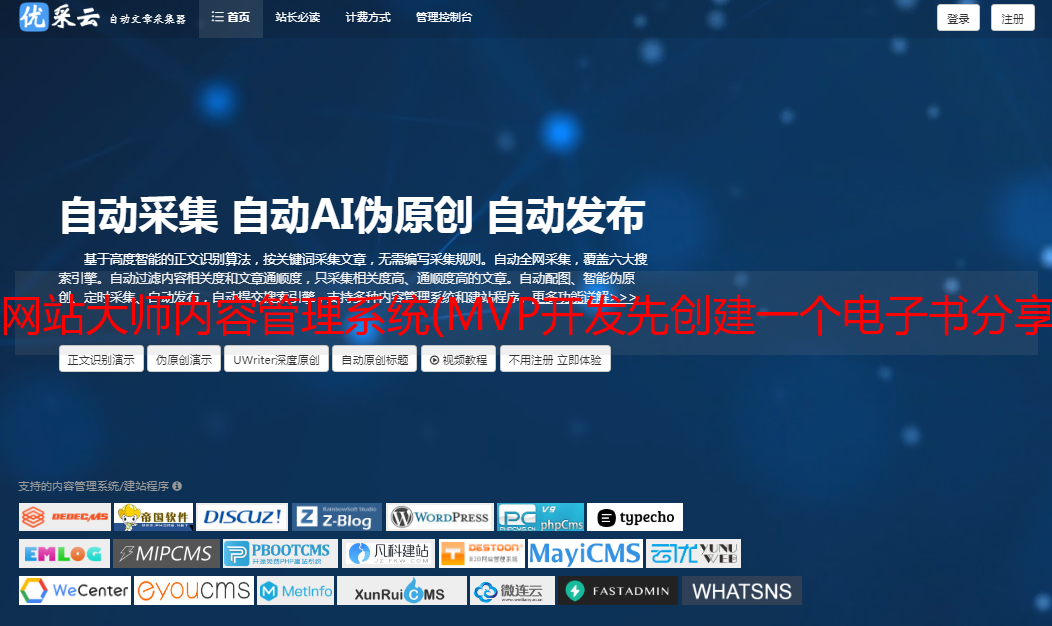 优采云 发布时间: 2021-12-11 02:06网站大师内容管理系统(MVP开发先创建一个电子书分享网站Bookist分享)