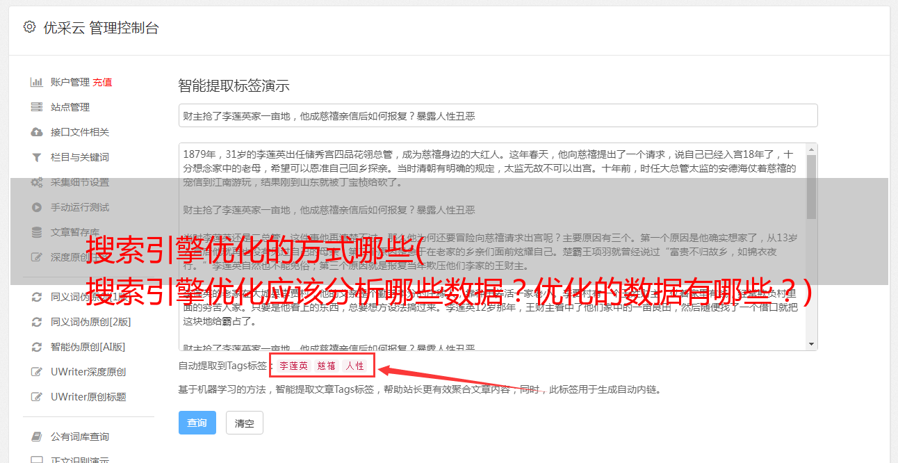 现在的搜索引擎虽然越来越智能化,但暂时还不能摆脱机器的本质,这间接说明搜索引擎还是有自己的局限性和依赖性的。也就是说,它仍然需要识别写入的文章。网站内容更新和收录在很长一段时间内仍会被视为主要参考因素之一,即不仅是收录的网站数量,还有也根据目前的搜索引擎,考虑收录的文章的特点和特点,然后根据搜索引擎定位更热门的内容。