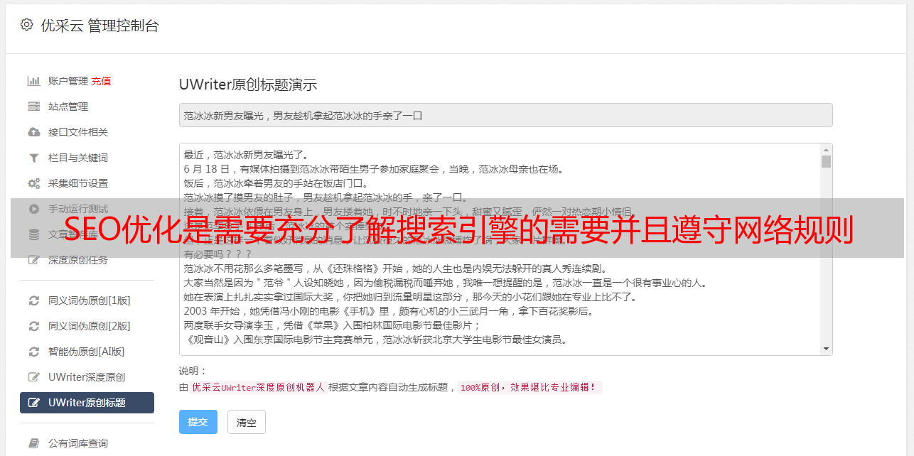 优采云 发布时间: 2021-04-04 03:03SEO优化是需要充分了解搜索引擎的需要并且遵守网络规则