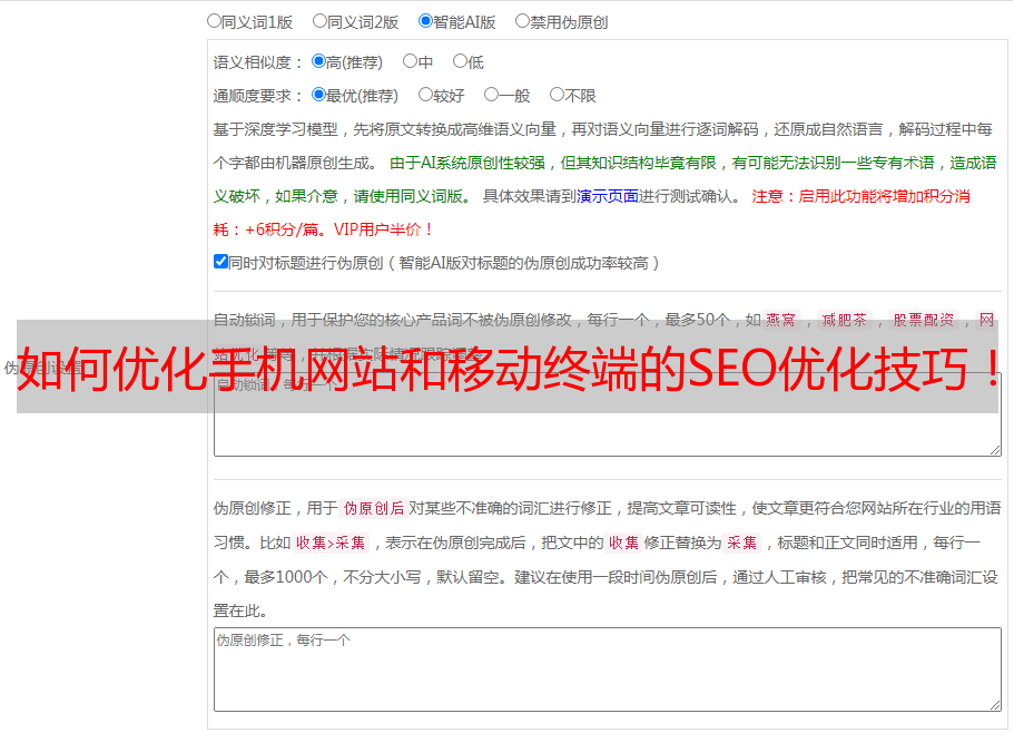 优采云 发布时间: 2021-04-04 03:18如何优化手机网站和移动终端的SEO优化技巧!!