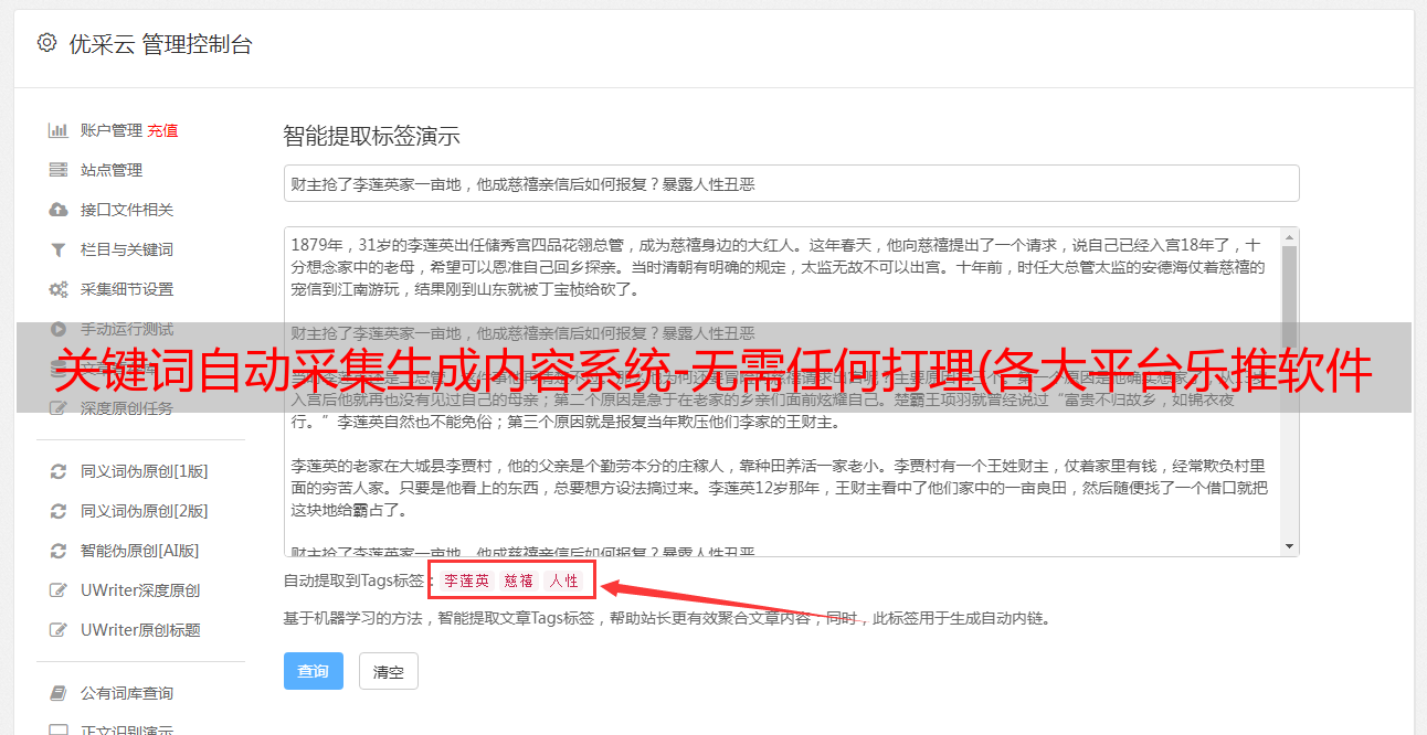 关键词自动采集生成内容系统-无需任何打理(各大平台乐推软件自动发布软件设置步骤及步骤)
