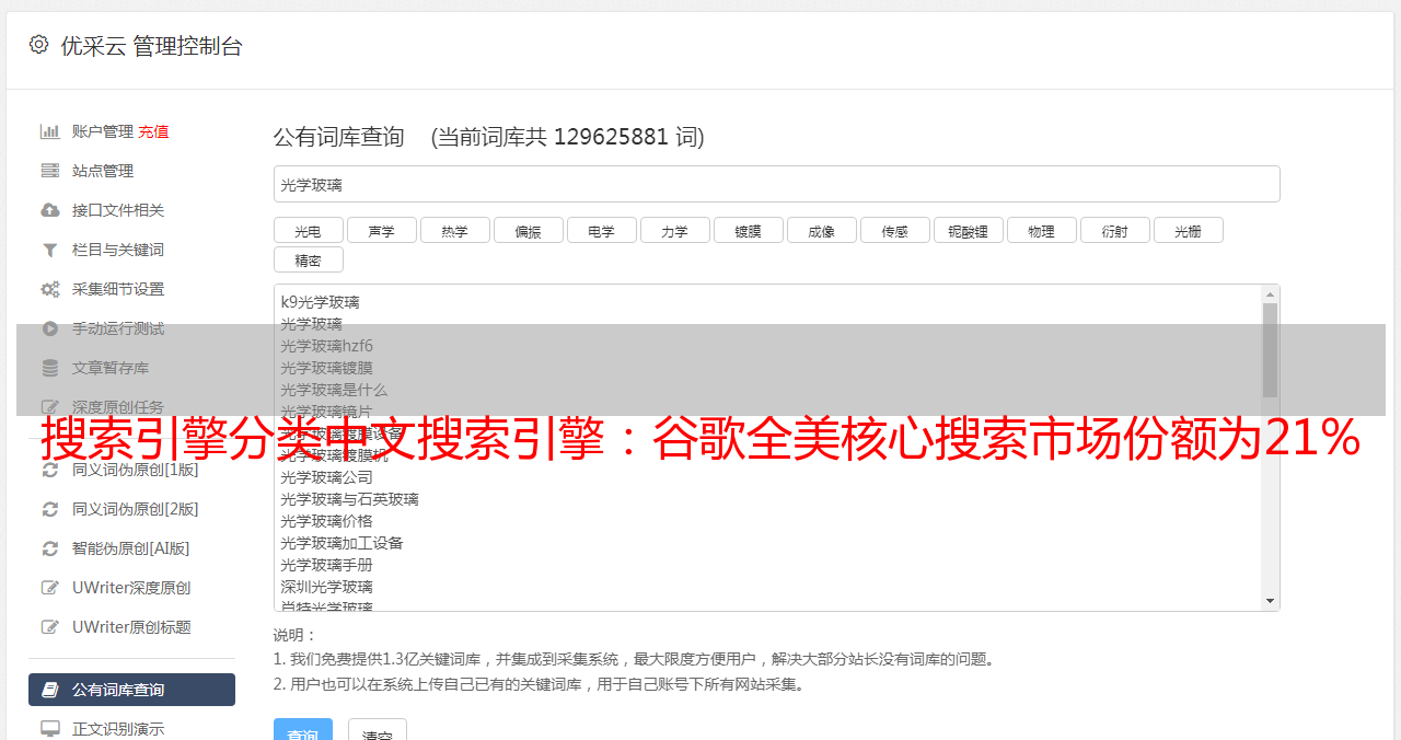 搜索引擎分类中文搜索引擎:谷歌全美核心搜索市场份额为21%