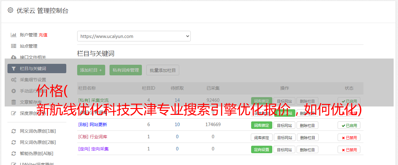 新航线优化技术天津专业搜索引擎优化报价*敏*感*词*,如何优化***网站排名?关键词的优化可以提升网站在***中的排名,企业可以根据网站的主题和用户的搜索习惯选择合适的关键词。另外我们可以使用5118工具后台等工具分析关键词的搜索量和转化率,然后选择搜索量大、转化率高的关键词进行优化,效果会会更好。因此,有必要提高网站的质量,例如用户内容。