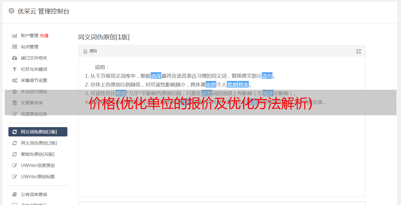 优采云 发布时间: 2021-12-13 22:06价格(优化单位的报价及优化方法解析)