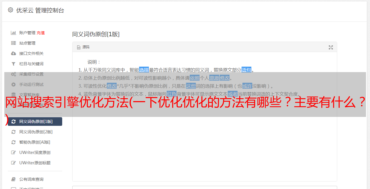 优采云 发布时间: 2021-12-14 04:15网站搜索引擎优化方法(一下优化优化的方法有哪些?主要有什么?