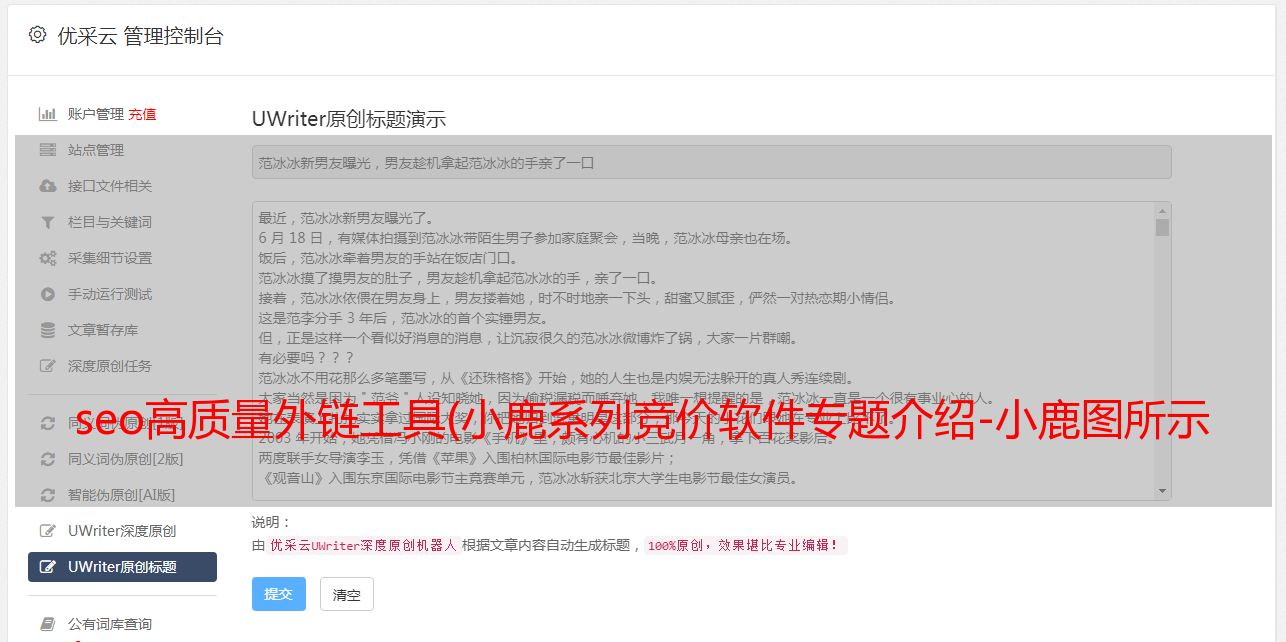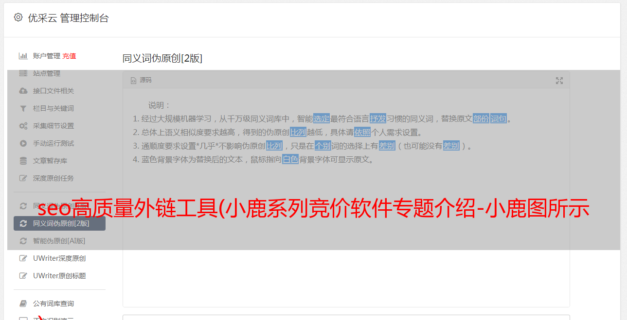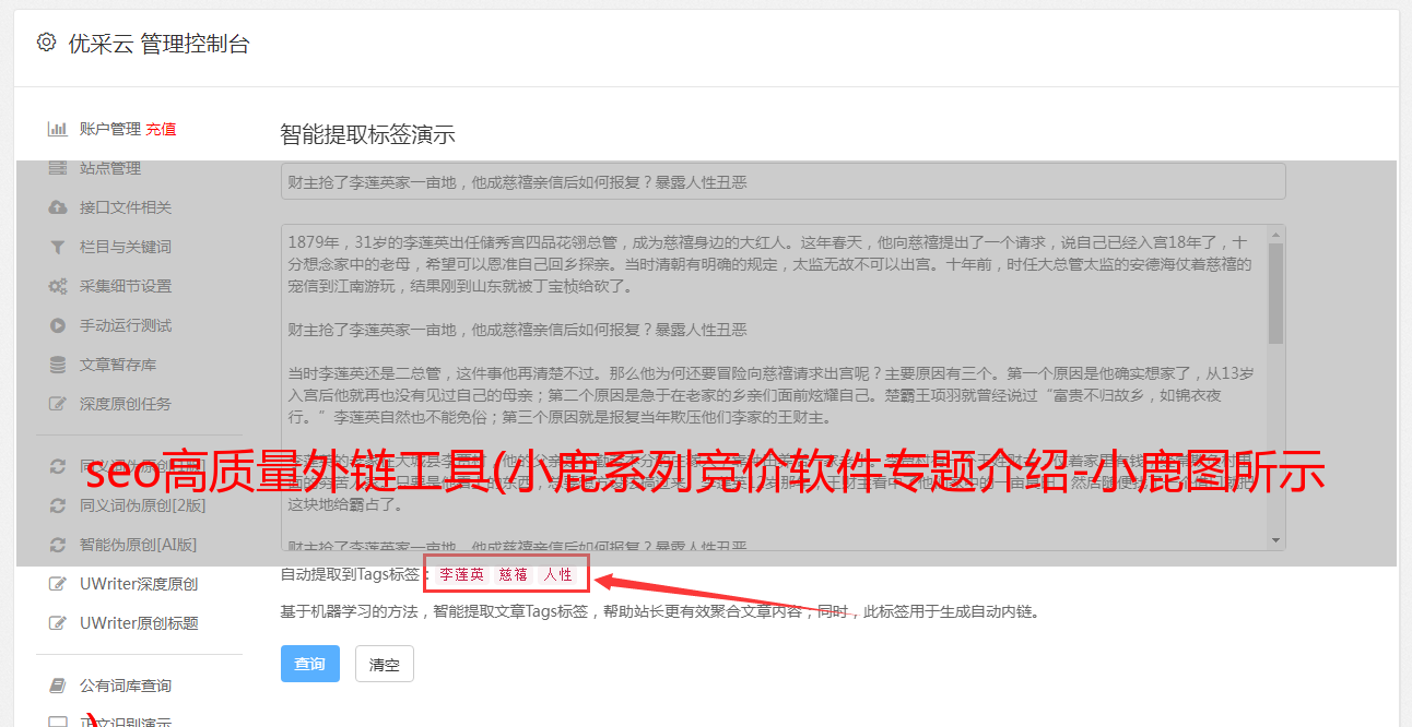 优采云 发布时间: 2021-12-14 06:23seo高质量外链工具(小鹿系列竞价软件专题介绍-小鹿图所示