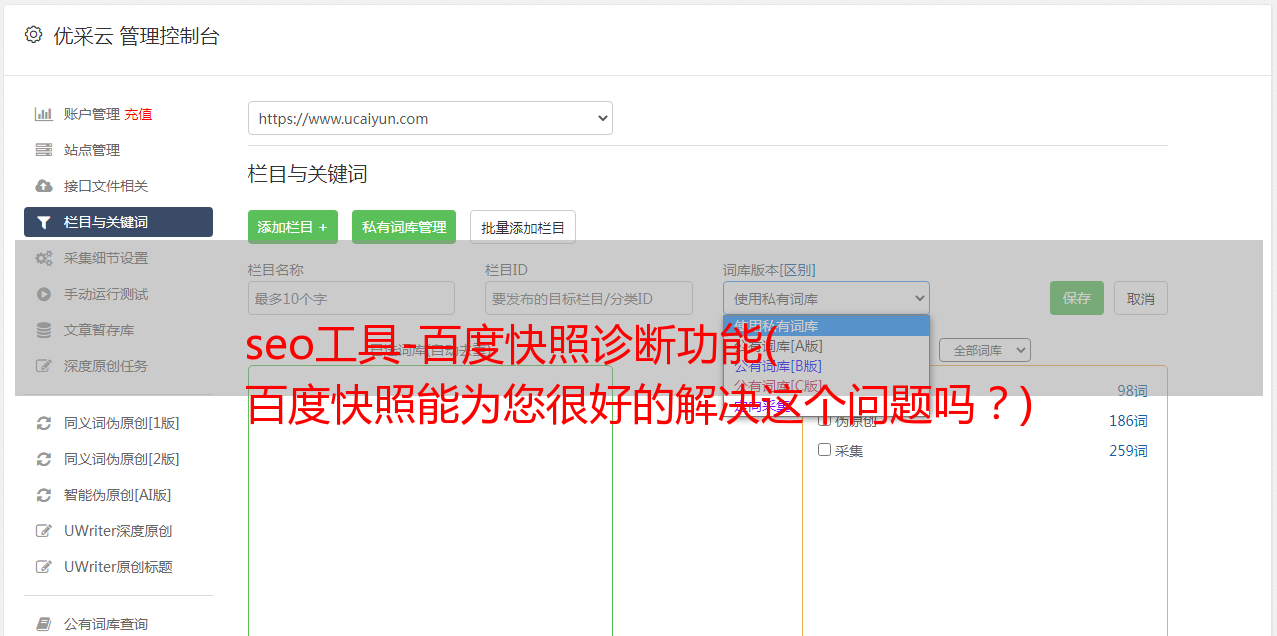 优采云 发布时间: 2021-12-14 07:24seo工具-百度快照诊断功能(