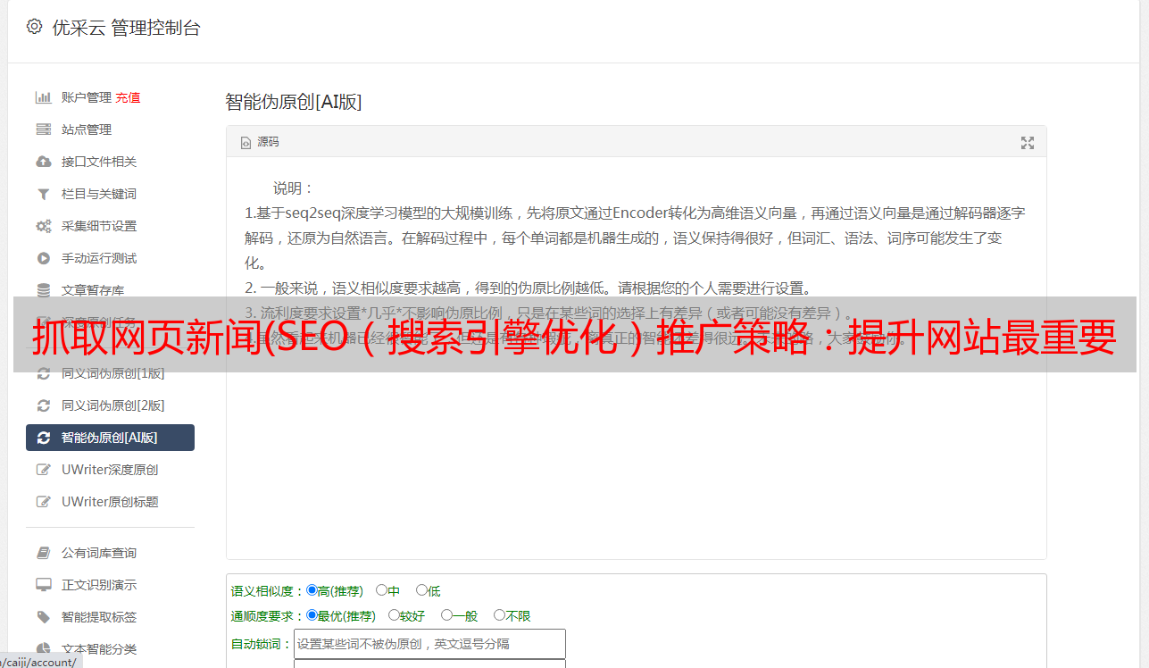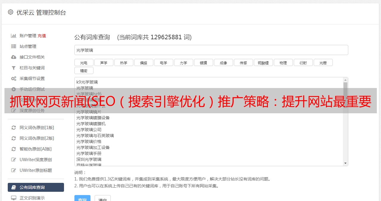 优采云 发布时间: 2021-12-15 06:45抓取网页新闻(SEO(搜索引擎优化)推广策略:提升网站最重要的关键词)