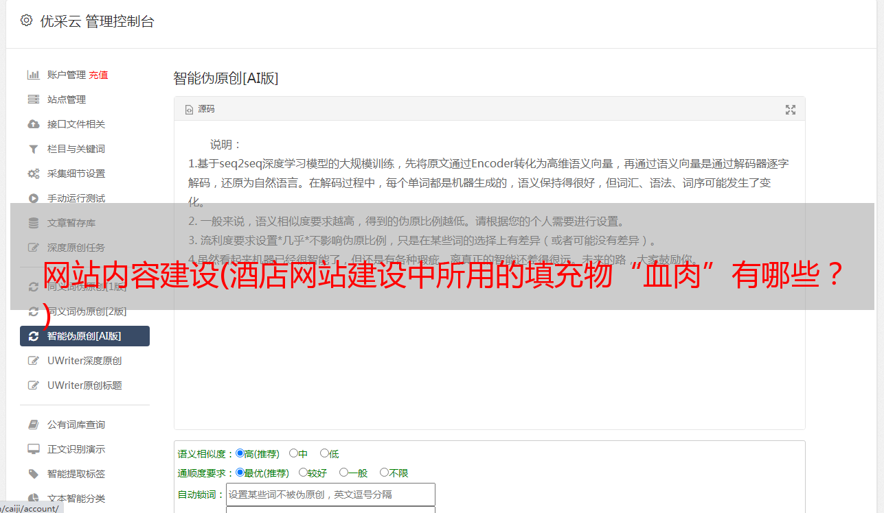 优采云 发布时间: 2021-12-15 09:16网站内容建设(酒店网站建设中所用的填充物“血肉”有哪些?