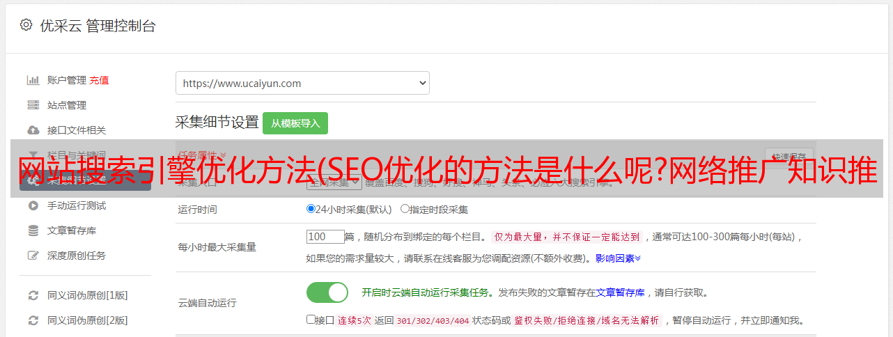 优采云 发布时间: 2021-12-15 17:07网站搜索引擎优化方法(SEO优化的方法是什么呢?网络推广知识推荐:SEO)