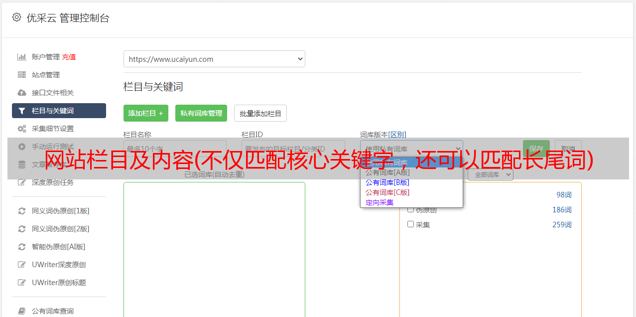 优采云 发布时间: 2021-12-15 21:02网站栏目及内容(不仅匹配核心关键字,还可以匹配长尾词)