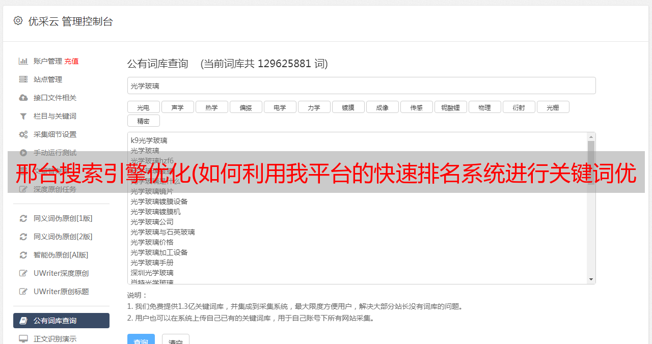 优采云 发布时间: 2021-12-16 00:37邢台搜索引擎优化(如何利用我平台的快速排名系统进行关键词优化排名?)