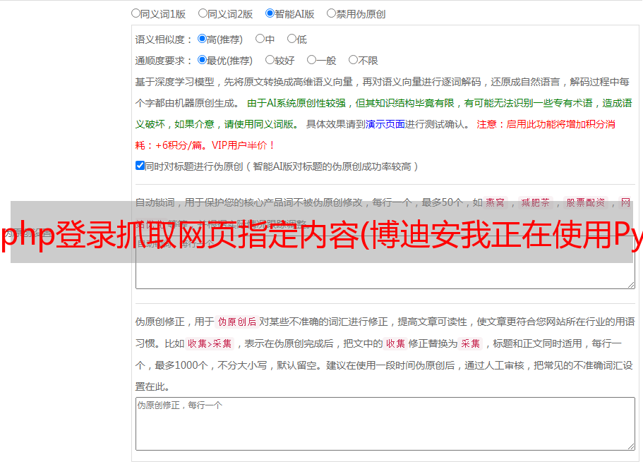 优采云 发布时间: 2021-12-16 03:24php登录抓取网页指定内容(博迪安我正在使用PythonScrapy来做到这一点的帮助