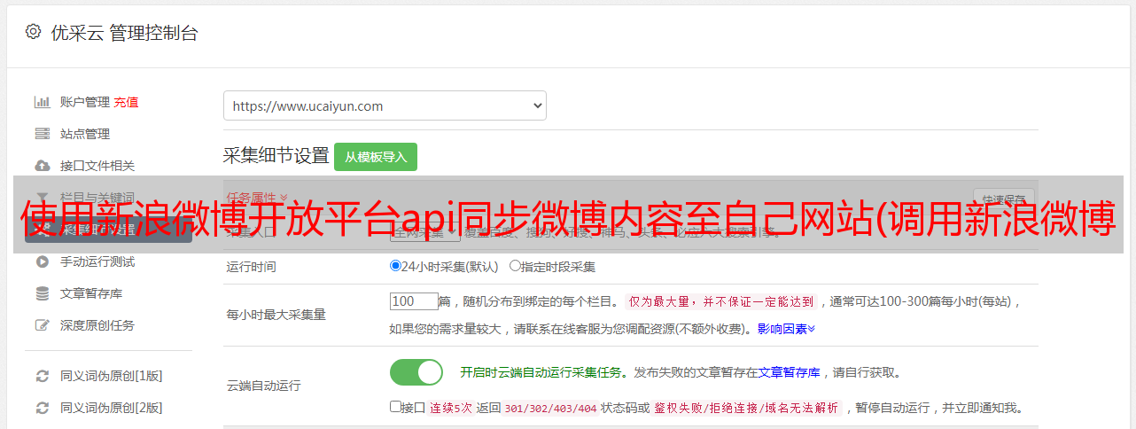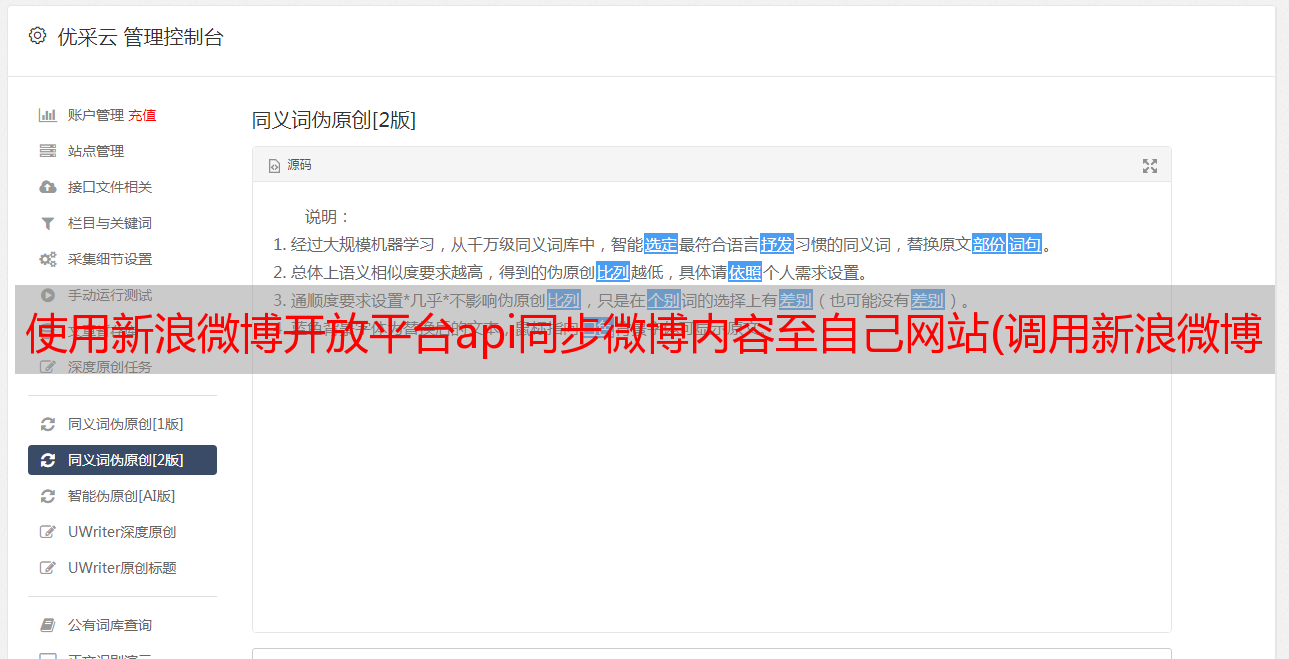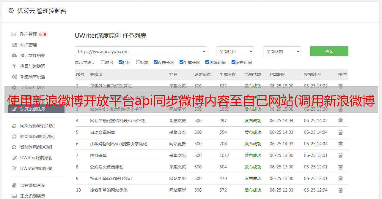 优采云 发布时间: 2021-12-16 09:15使用新浪微博开放平台api同步微博内容至自己网站(调用新浪微博开放平台API开发自己的微博应用(App))