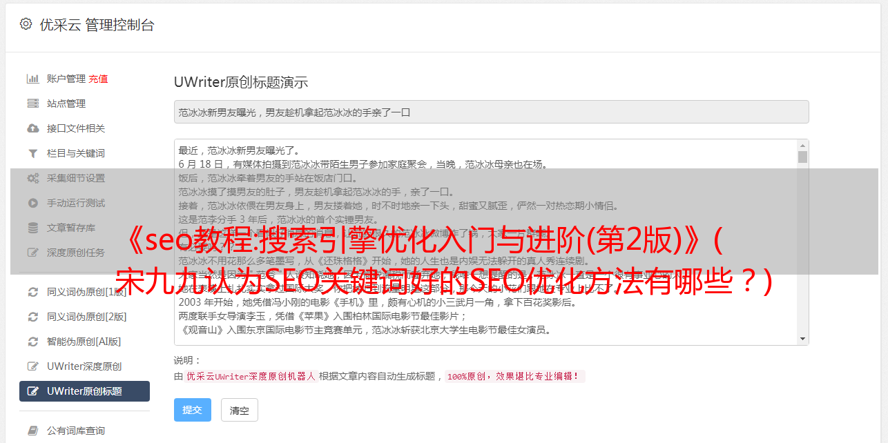 优采云 发布时间: 2021-12-16 16:05《seo教程:搜索引擎优化入门与进阶(第2版)》(