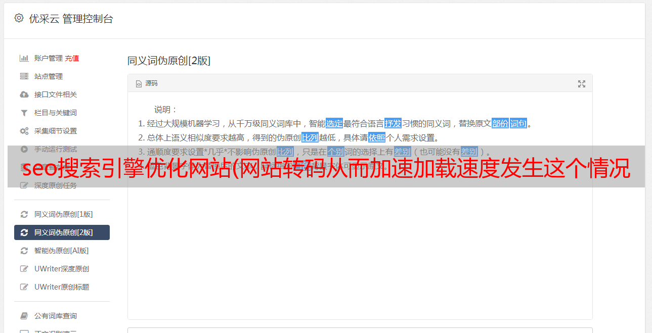 优采云 发布时间: 2021-12-17 14:27seo搜索引擎优化网站(网站转码从而加速加载速度发生这个情况时你的网站内容)