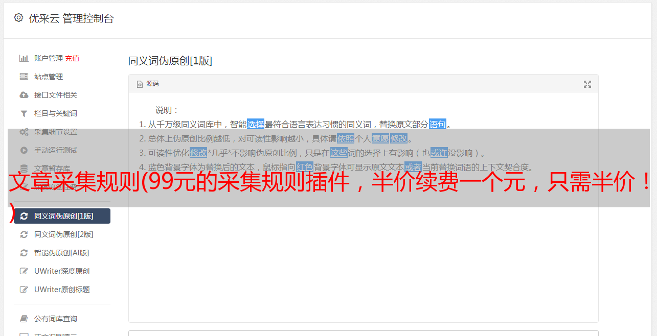优采云 发布时间: 2021-12-18 00:03文章采集规则(99元的采集规则插件,半价续费一个元,只需半价!