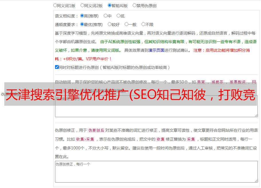 这篇文章是关于主题的,这是你从文章写作中知道的规则。放到网上,做SEO,text-to-topic的规则很重要。可以说,这是直接影响网站关键词排名的一个因素。有的朋友不理会这篇文章说得对,而是在标题和内容中写了太多关键词。当网站没有排名时,他们仍然不知道出了什么问题。俗话说“知己知彼,百战不死”。放在网站上,我们需要知道我们网站的内容布局,还要熟悉搜索引擎的规则。网站 中的内容可以被两种类型的人看到。一个是搜索引擎的“蜘蛛侠”,即 搜索引擎的程序;另一个是人类,也就是网友。并且 网站 首先显示给搜索引擎,然后显示给人们。说到程序,众所周知,程序是程序员编写的规则。既然是定规,程序虽然有一定的智能,但不是***,当然不能代替人类。所以,搜索引擎程序抓取网站的内容时,会从网站的源代码中提取文本,然后进行匹配,有点打勾。河北正规SEO搜索引擎优化多少钱 程序虽然有一定的智能,但不是***,当然不能代替人类。所以,搜索引擎程序抓取网站的内容时,会从网站的源代码中提取文本,然后进行匹配,有点打勾。河北正规SEO搜索引擎优化多少钱 程序虽然有一定的智能,但不是***,当然不能代替人类。所以,搜索引擎程序抓取网站的内容时,会从网站的源代码中提取文本,然后进行匹配,有点打勾。河北正规SEO搜索引擎优化多少钱