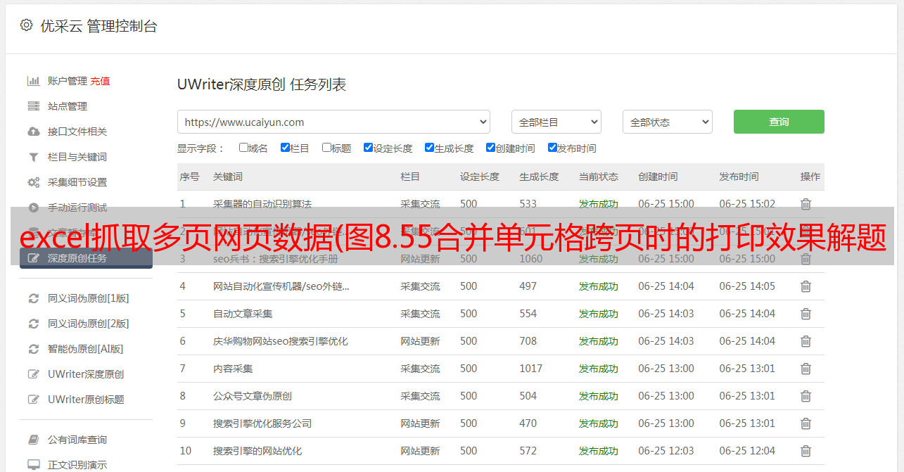 优采云 发布时间: 2021-12-18 15:18excel抓取多页网页数据(图8.55合并单元格跨页时的打印效果解题步骤Excel的内置工具不足以解决)