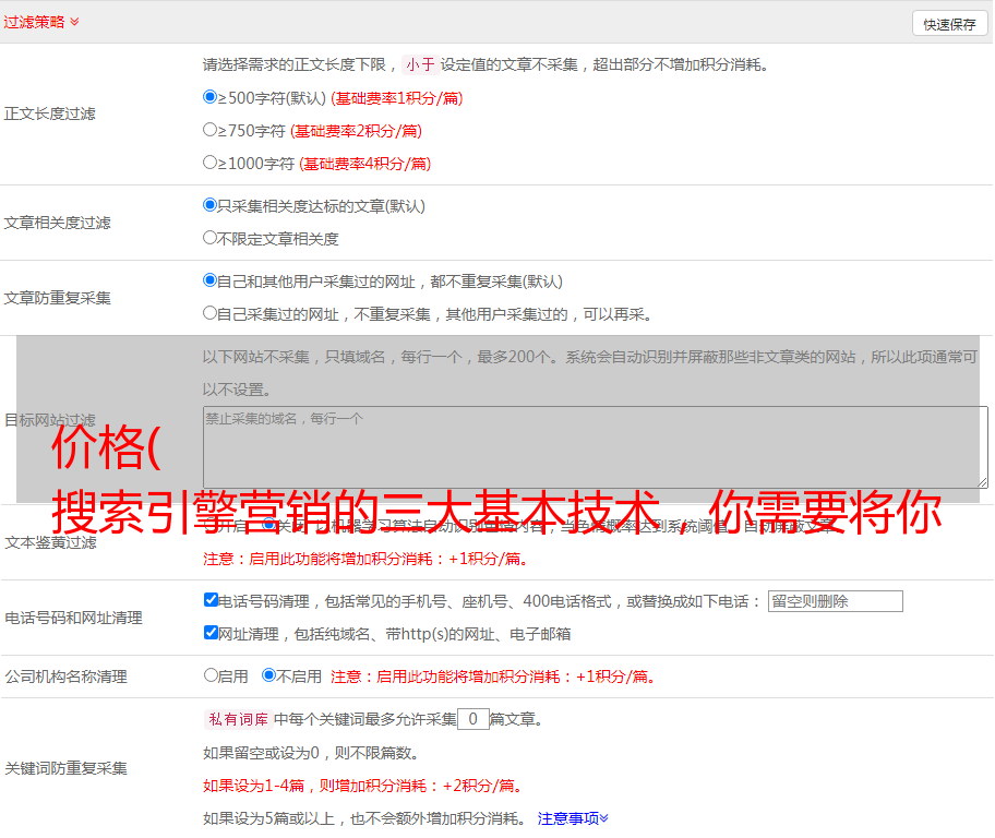 【词】简单介绍一下搜索引擎营销的三大基本技巧——诺亚搜索引擎营销的三大基本技巧一自然搜索。自然搜索是指搜索引擎找到与搜索请求最相关的匹配网页的方法。自然搜索结果只与搜索者键入的搜索请求的相关性有关。它不会受到任何搜索引擎营销商付款的影响。搜索营销人员使用许多技术来提高他们在自然搜索结果中的 网站 性能。这些技术通常称为搜索引擎优化 SEO 第二个目录列表 该目录列出了与其主题类别列表中的每个主题最相关的 网站 列表。您需要将您的网站提交到目录网站 为了使网站显示在合适的学科类别下,目录列表是最早的搜索付费载体,一般用于目录网站 目录网站通常由编辑根据为主题安排网站的站点目录列表通常保证宣传您的网站或网站的一部分,但不保证您的网站的哪一部分或多少会出现在列表中,人们将单击您的 网站 目录。编辑器决定将您的 网站 置于哪个主题类别下。您还可以请求特定类别。大多数网站在一个主题类别中只有一个指向他们主页的链接,但是大中型公司有多个具有不同主题的网页,因此您可以获得多个目录列表。该目录通常与其他站点一起使用。结果是雅虎在许多搜索网站上。显示其目录,包括雅虎本身。几乎所有搜索引擎都显示 OpenDirectory 结果,包括 Google。但请记住,使用目录的人数远少于执行搜索的人数。目录是一种使网站引人注目的廉价方式。排名搜索结果有三个付费搜索引擎广告 1CPMCostPerMille Cost PerMille Cost PerMille 网络广告最科学的收费方式是根据看到你的广告的人数来收费。按访问量收费已成为网络广告的惯例。每千人 CPM 成本是指广告。在这个过程中,每个听到或看到广告的人在平均广告成本中所占的比例是多少。传统媒体大多采用这种定价方式。在线广告每千次展示费用取决于印象规模。它通常被理解为一个人的眼睛在固定的时间段内观看广告。比如一个广告banner的单价是1元CPM,表示每千人看到这个banner,就收费1元,以此类推,10000人访问的首页就是10元。至于每CPM的收费根据首页的受欢迎程度,即浏览人数,采用固定费率。国际惯例是每CPM收费5美元到200美元。2CPCCostPerClick 每次点击费用按每次点击计费。这种方法加上点击率限制可以〖WX〗比较难作弊,是网站网站推广的最佳方式,但是这种方式的广告很多。网站 觉得不公平。例如,虽然观众还没有点击它,但他已经看到了。对于那些看到广告但没有点击广告的流量,网站成了一大堆忙碌的活动。网站 不愿意做这样的广告。据说传统媒体从来没有这样做过。3CPACostPerAction cost per action CPA定价方法是指广告的实际效果,即在不限制广告量的情况下,对计费的有效问卷或订单。网站的CPA定价方式存在一定风险,但如果广告投放成功,收益会比CPM定价方式大很多。广告商要避免*敏*感*词*用的风险。只有当网络用户点击横幅广告链接到广告主的网页时,他们才会根据点击次数向广告网站付费。成本 4CPRCostPerResponse 每个响应的成本是针对查看者的每个响应收取的。此广告收费