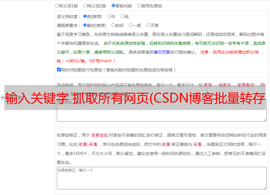 2、【批量转PDF】:此功能仅适用于CSDN博客页面。需要先设置2个参数。搜索“关键词”和“页数”。搜索CSDN博客后按“关键词”批量转储结果页的所有主题页(你设置的页数)。