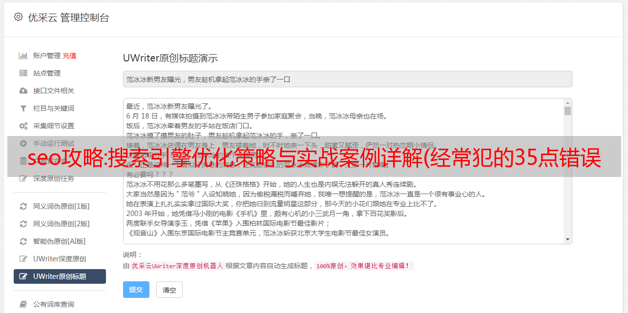 优采云 发布时间: 2021-12-21 03:04seo攻略:搜索引擎优化策略与实战案例详解(经常犯的35点错误,你中*敏*感*词*了吗?)