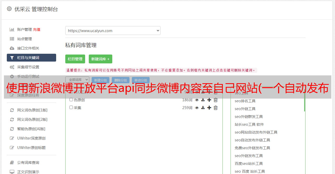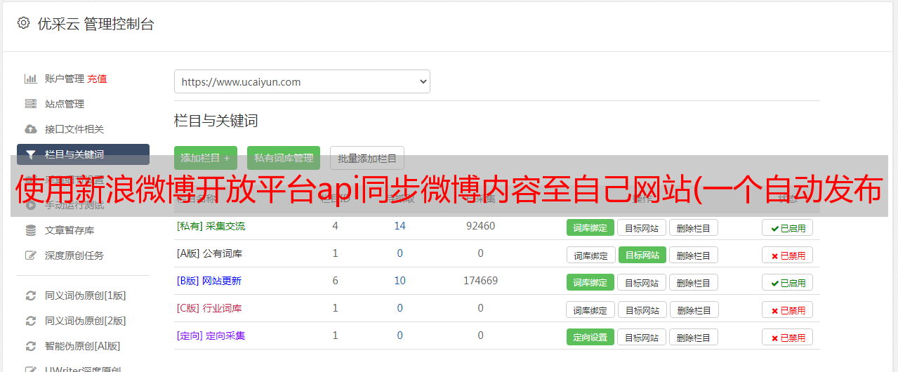 优采云 发布时间: 2021-12-21 21:07使用新浪微博开放平台api同步微博内容至自己网站(一个自动发布新浪微博的机器人(图)分享(组图))