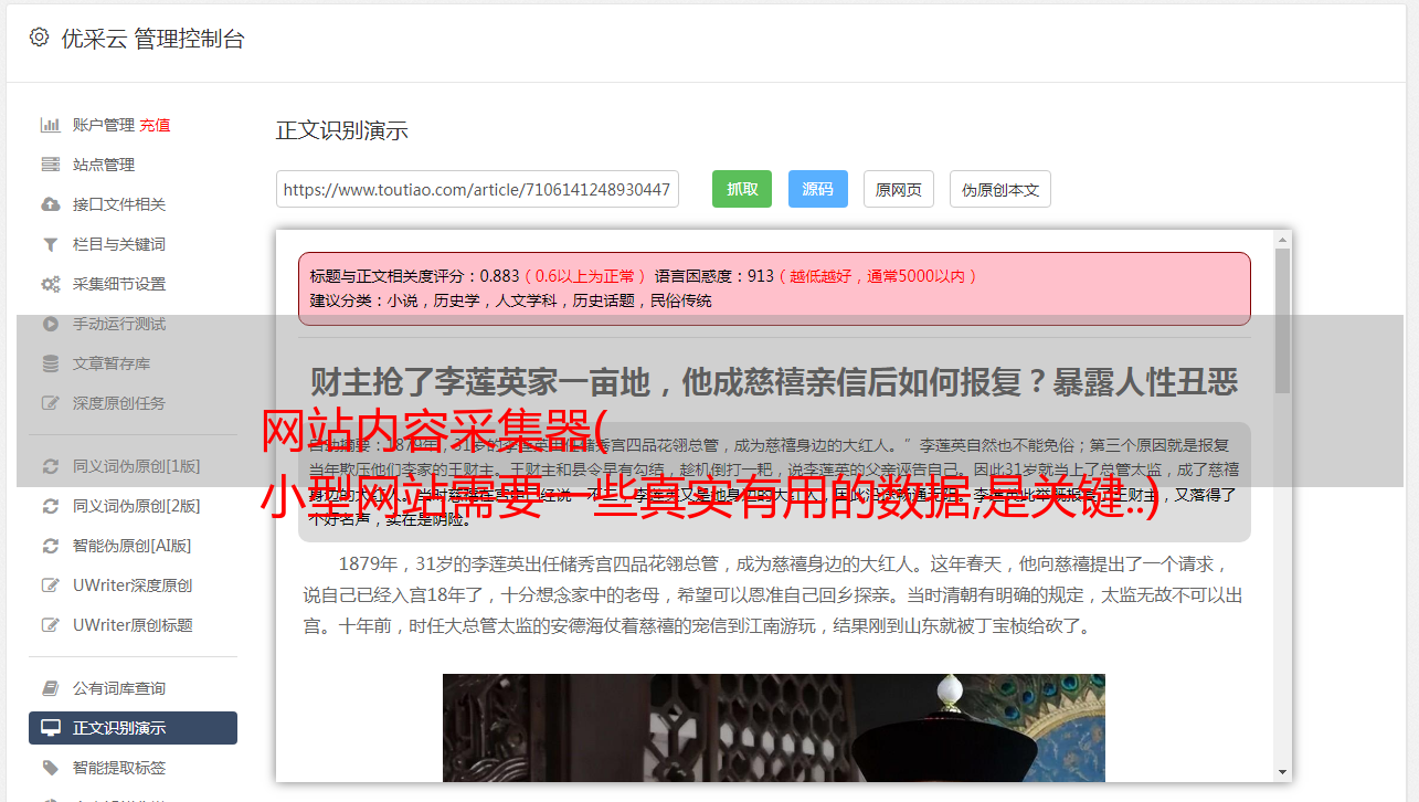 网站内容采集器( 小型网站需要一些真实有用的数据,是关键..)