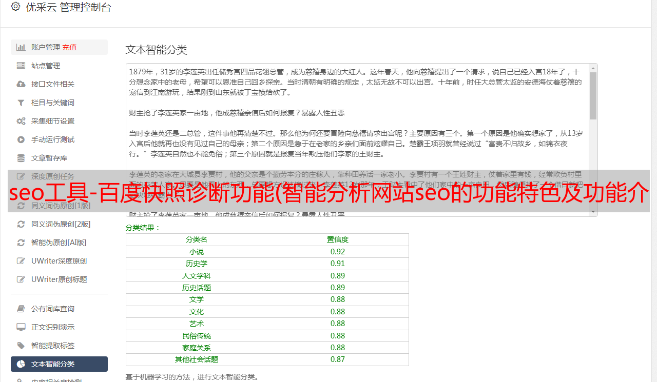 优采云 发布时间: 2021-12-22 02:17seo工具-百度快照诊断功能(智能分析网站seo的功能特色及功能介绍-乐题库