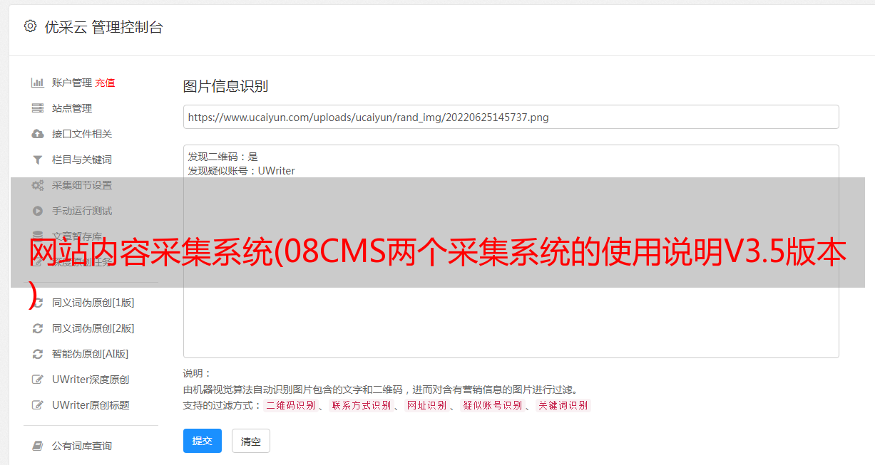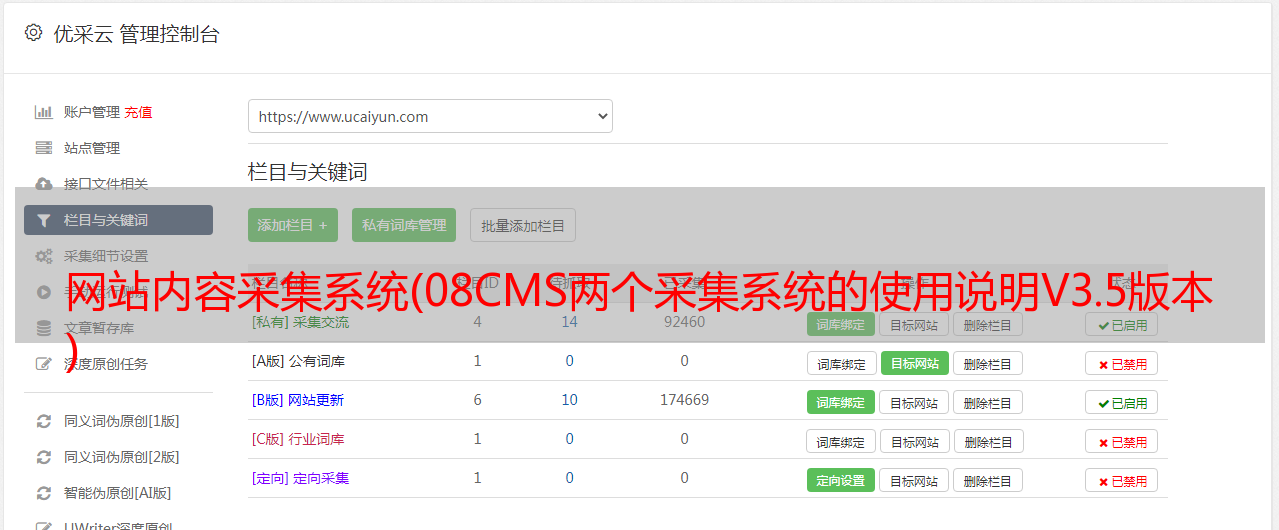 网站内容采集系统(08CMS两个采集系统的使用说明V3.5版本 )