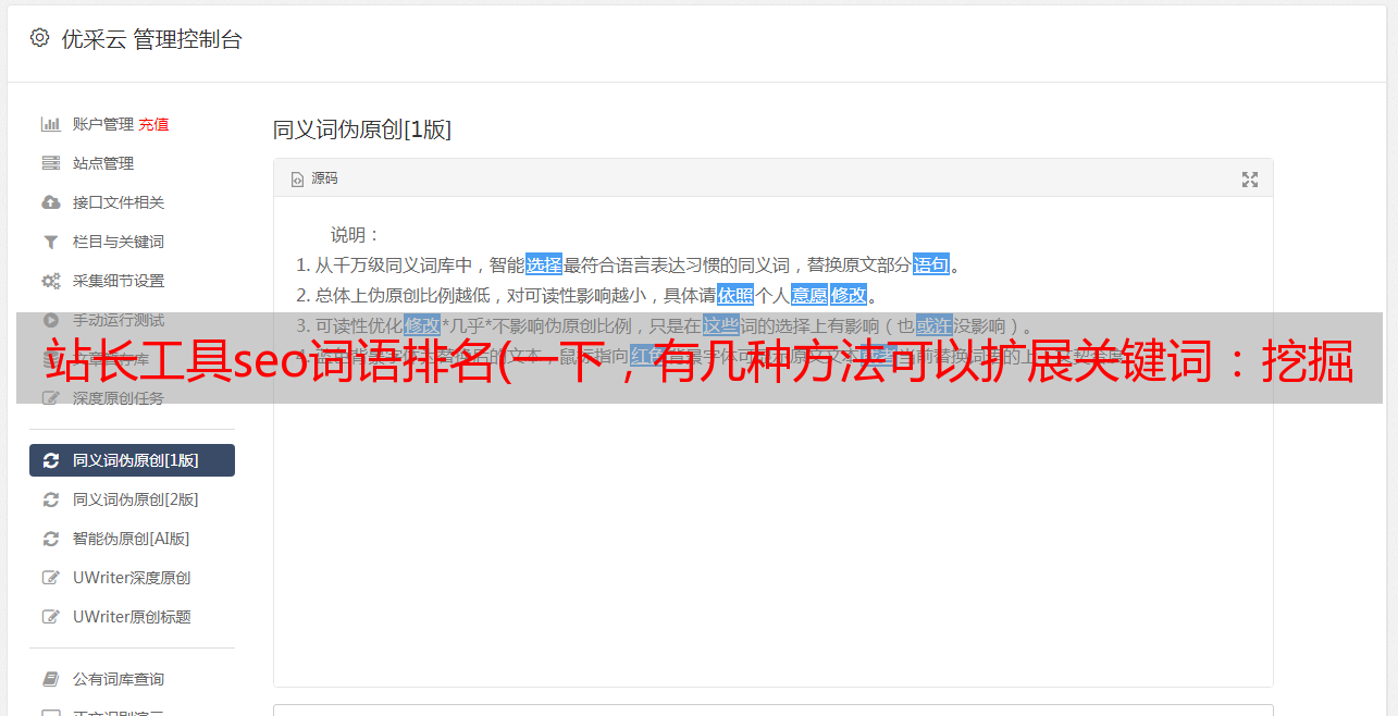 优采云 发布时间: 2021-12-22 17:02站长工具seo词语排名(一下,有几种方法可以扩展关键词:挖掘思路和方法)