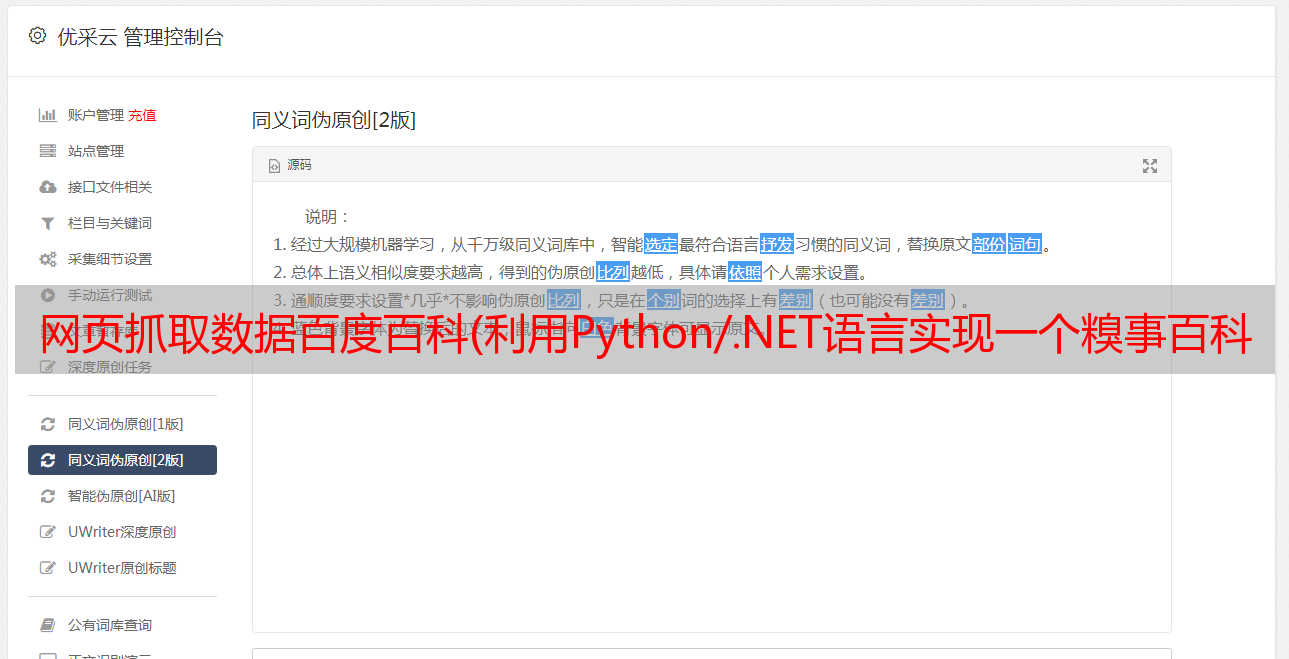 优采云 发布时间: 2021-12-22 20:04网页抓取数据百度百科(利用Python/.NET语言实现一个糗事百科的爬虫)