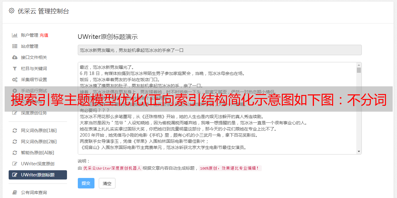 优采云 发布时间: 2021-12-23 21:24搜索引擎主题模型优化(正向索引结构简化*敏*感*词*如下图:不分词没有什么区别)
