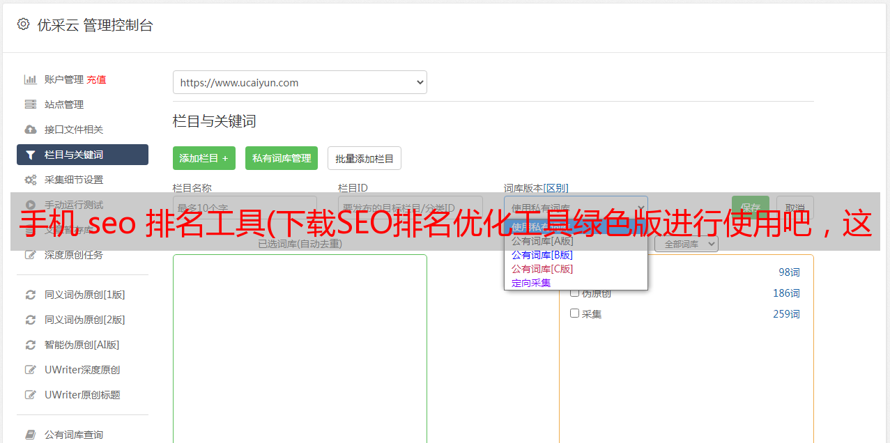 优采云 发布时间: 2021-12-24 05:19手机 seo 排名工具(下载SEO排名优化工具绿色版进行使用吧,这款智能优化