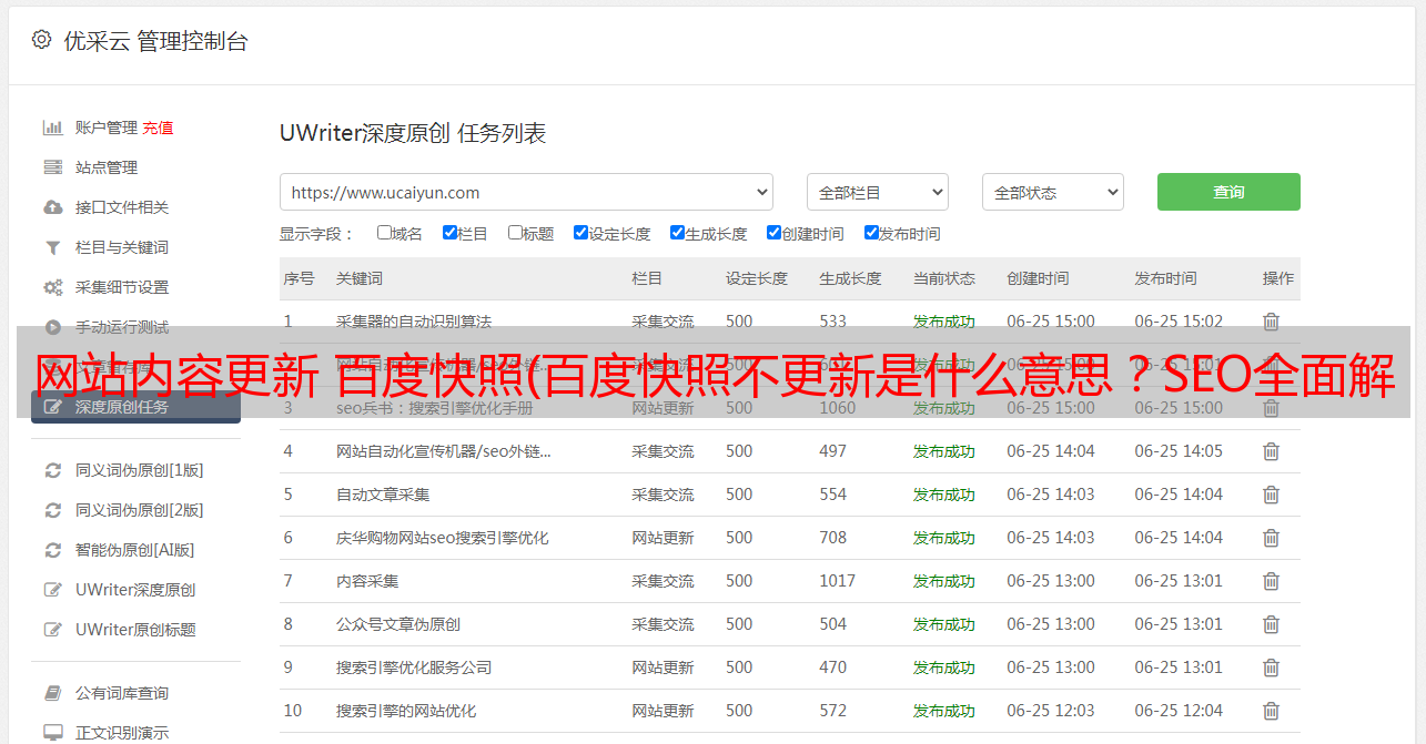 优采云 发布时间: 2021-12-24 11:09网站内容更新 百度快照(百度快照不更新是什么意思?SEO全面解答!)