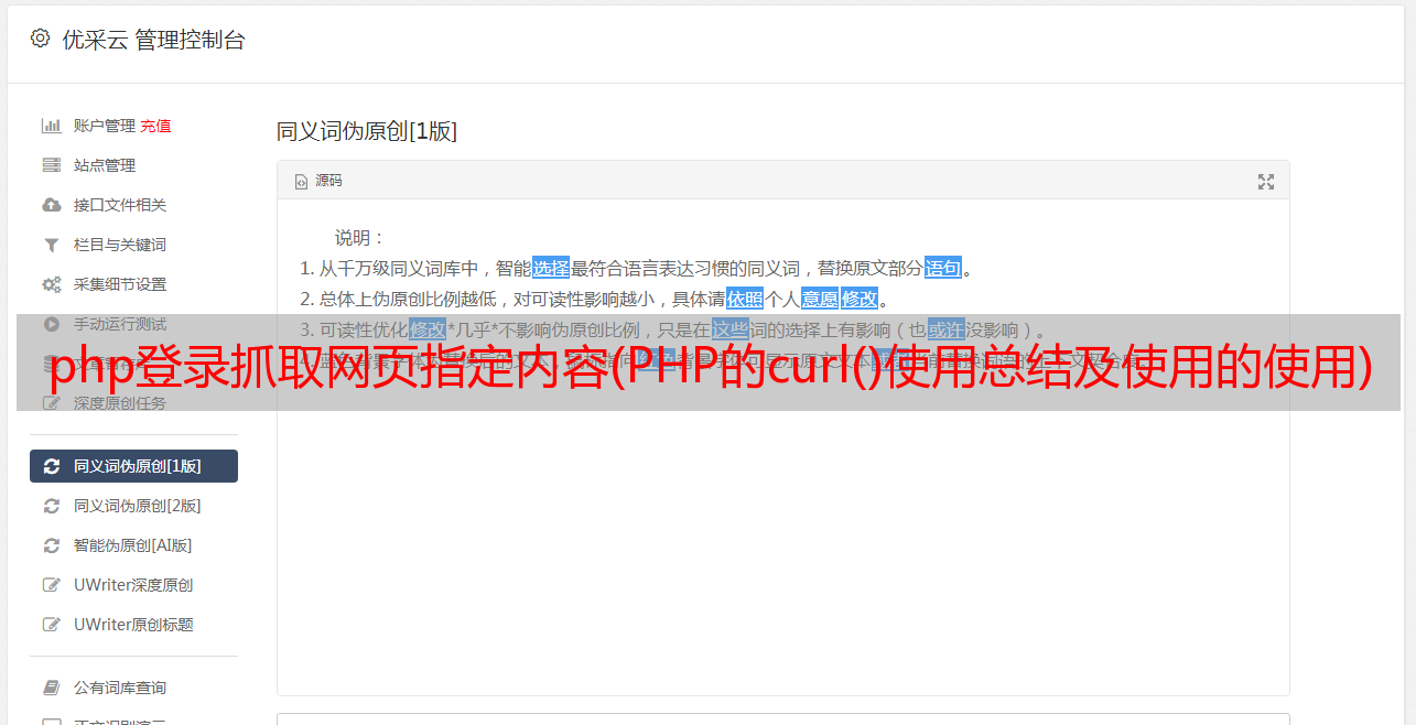优采云 发布时间: 2021-12-24 15:03php登录抓取网页指定内容(PHP的curl()使用总结及使用的使用)