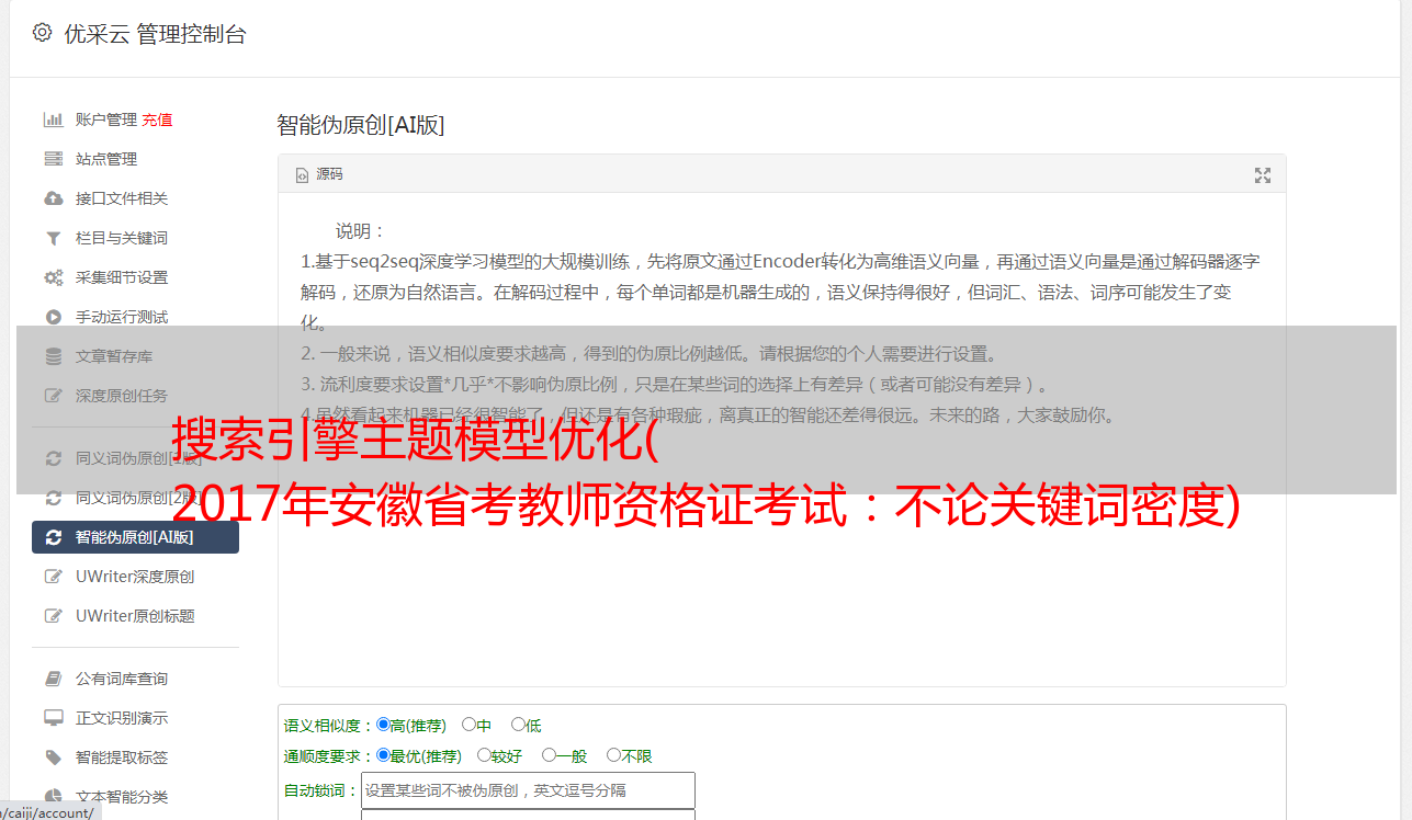 搜索引擎主题模型优化( 2017年安徽省考教师*敏*感*词*考试:不论关键词密度)